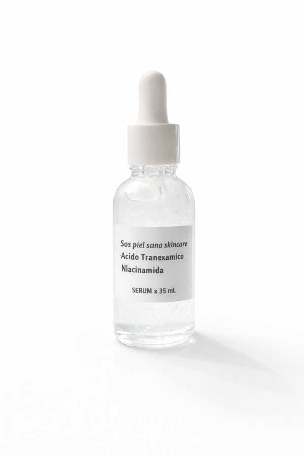Sérum despigmentante ácido tranexamico combinado con niacinamida es altamente eficaz para combatir manchas, el tono desigual y la opacidad de la piel. Su fórmula calma, hidrata y mejora visiblemente la apariencia del rostro. Ideal para pieles con hiperpigmentación, rojeces o marcas post-acné.
